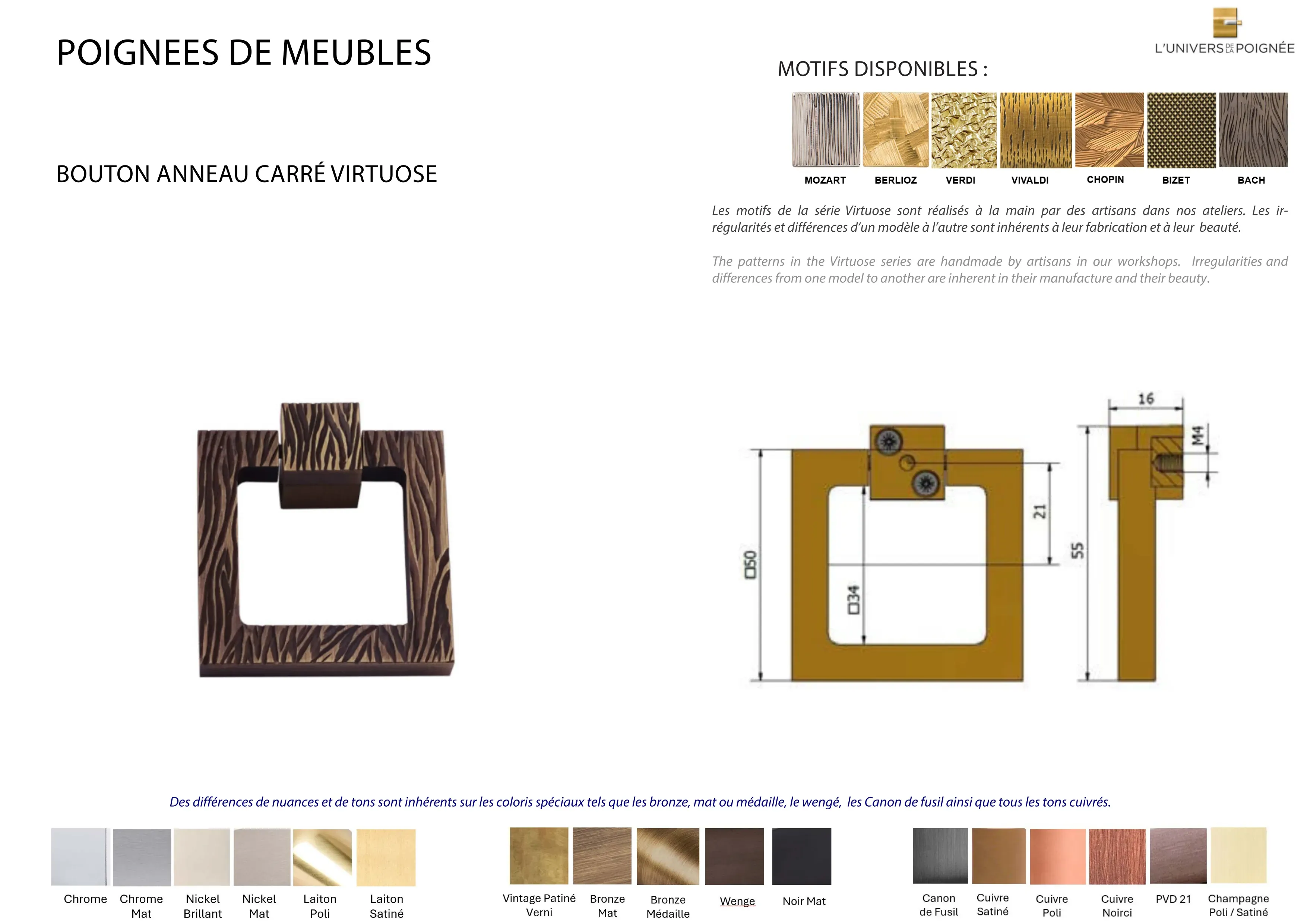 Bouton de meuble anneau carré VIRTUOSE